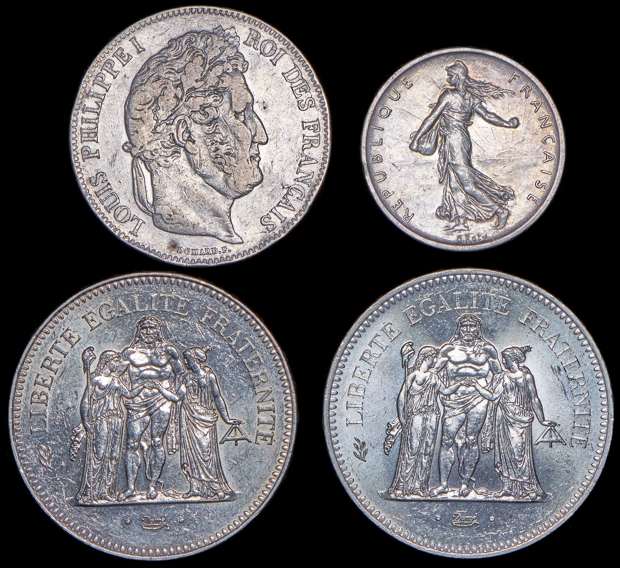 VF-MS. 5 франков 1838, 50 франков 1975, 1977, 5 франков 1960.