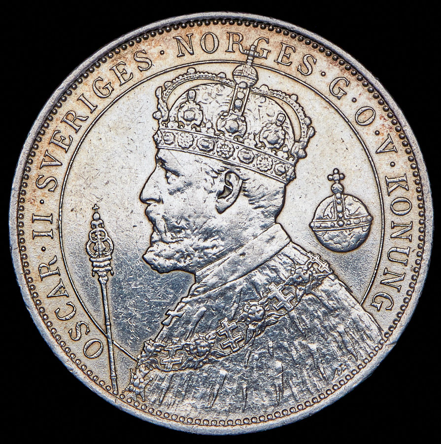 2 кроны 1897 "25 лет вступлению на престол Короля Оскара II" (Швеция)