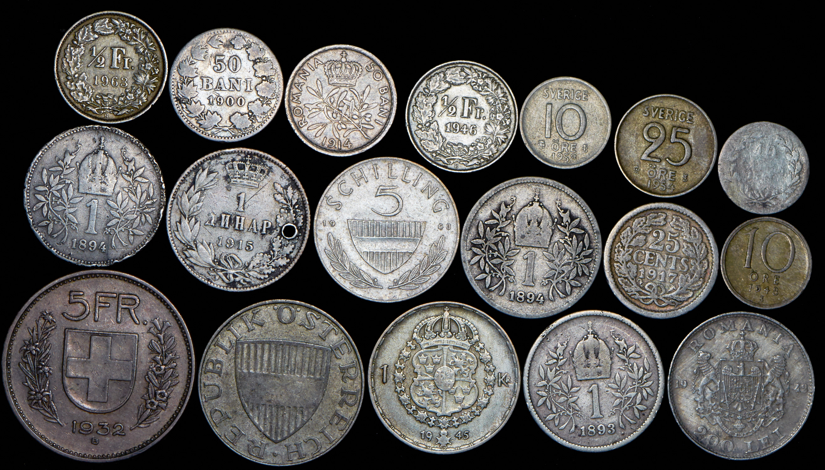 Набор из 18 сер. монет (страны Европы)