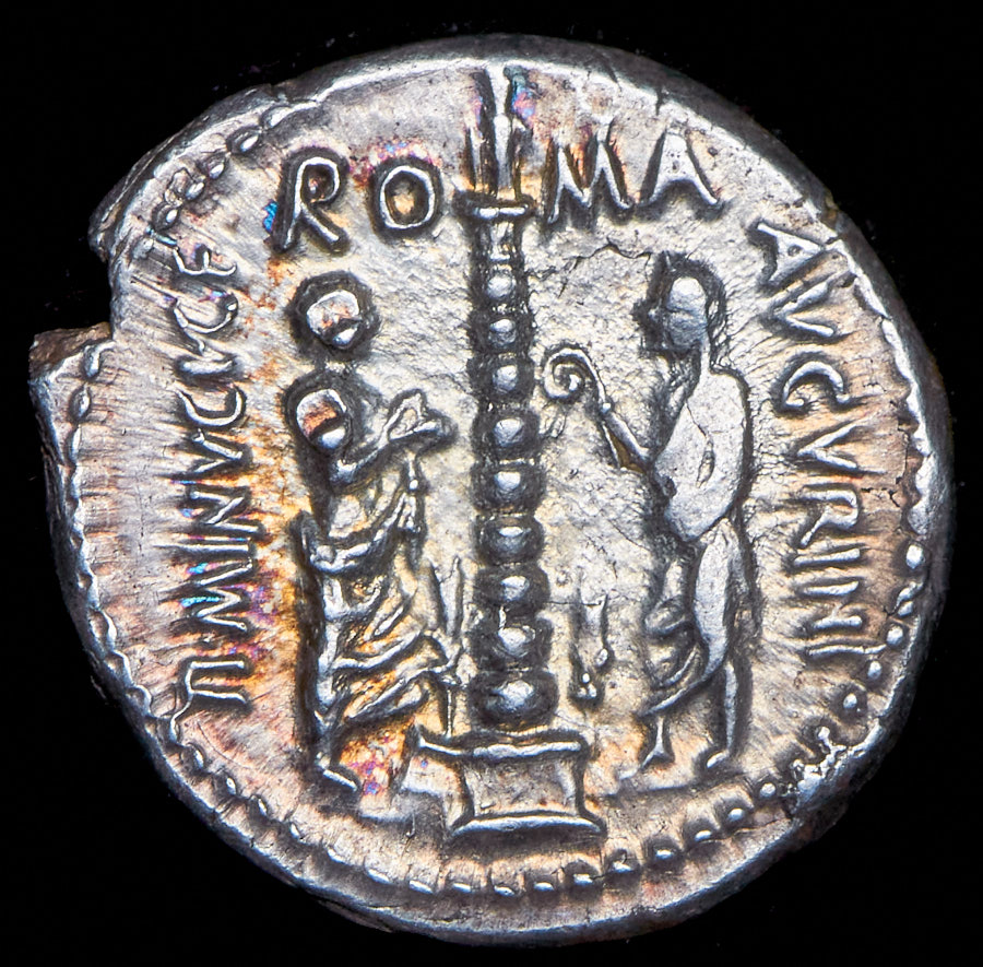 Денарий. Тиберий Минуций Авгурин. Рим империя