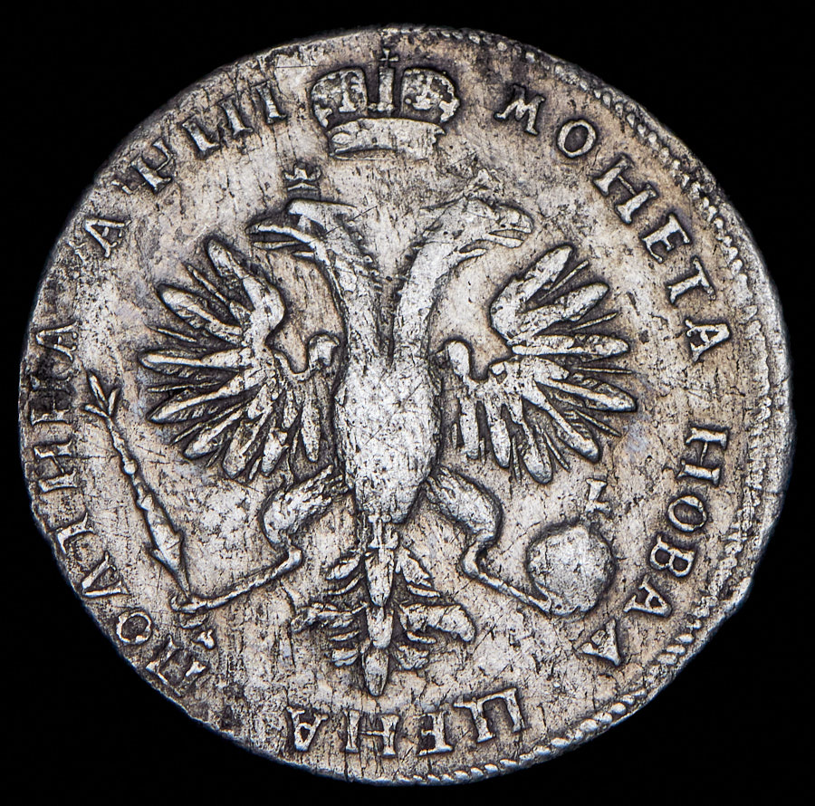 Кадашевский монетный двор. Портрет с пряжкой на плече, без арабесок на груди. L на хвосте орла.