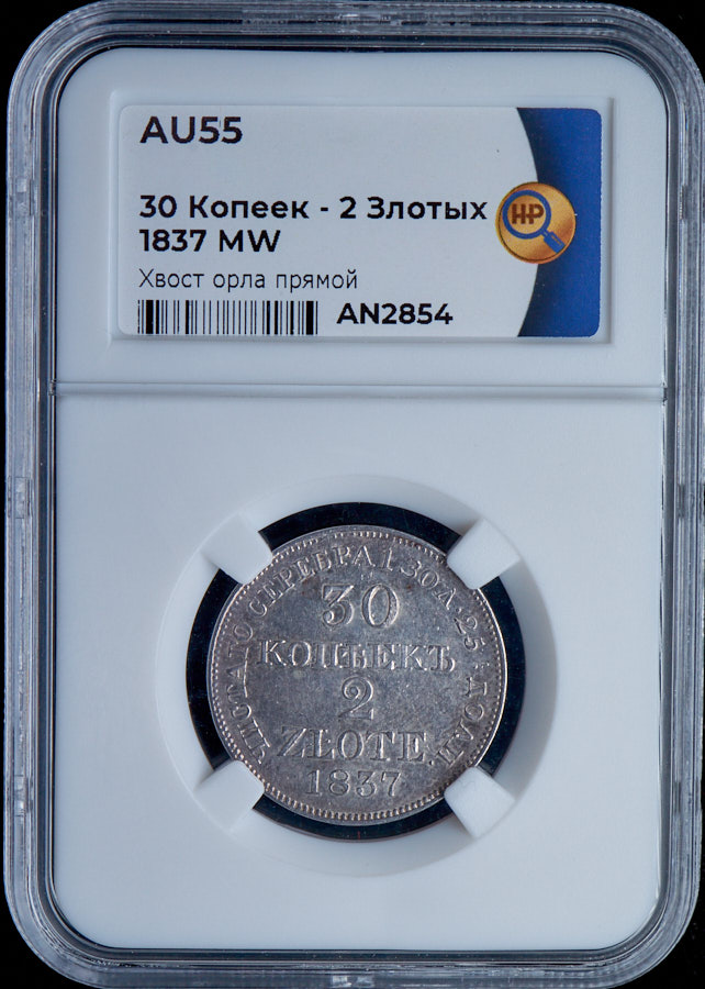30 копеек - 2 злотых 1837 (в слабе) MW