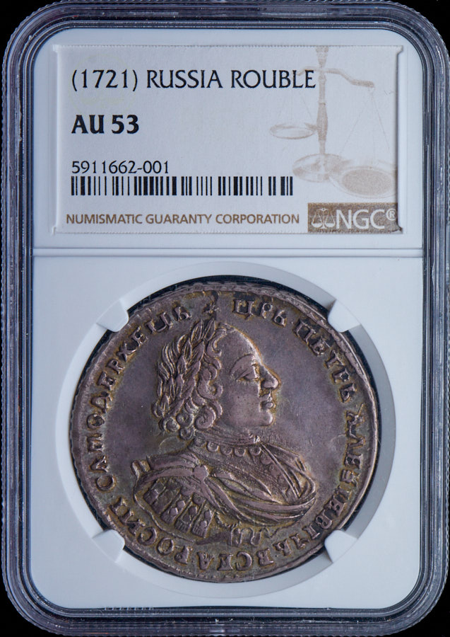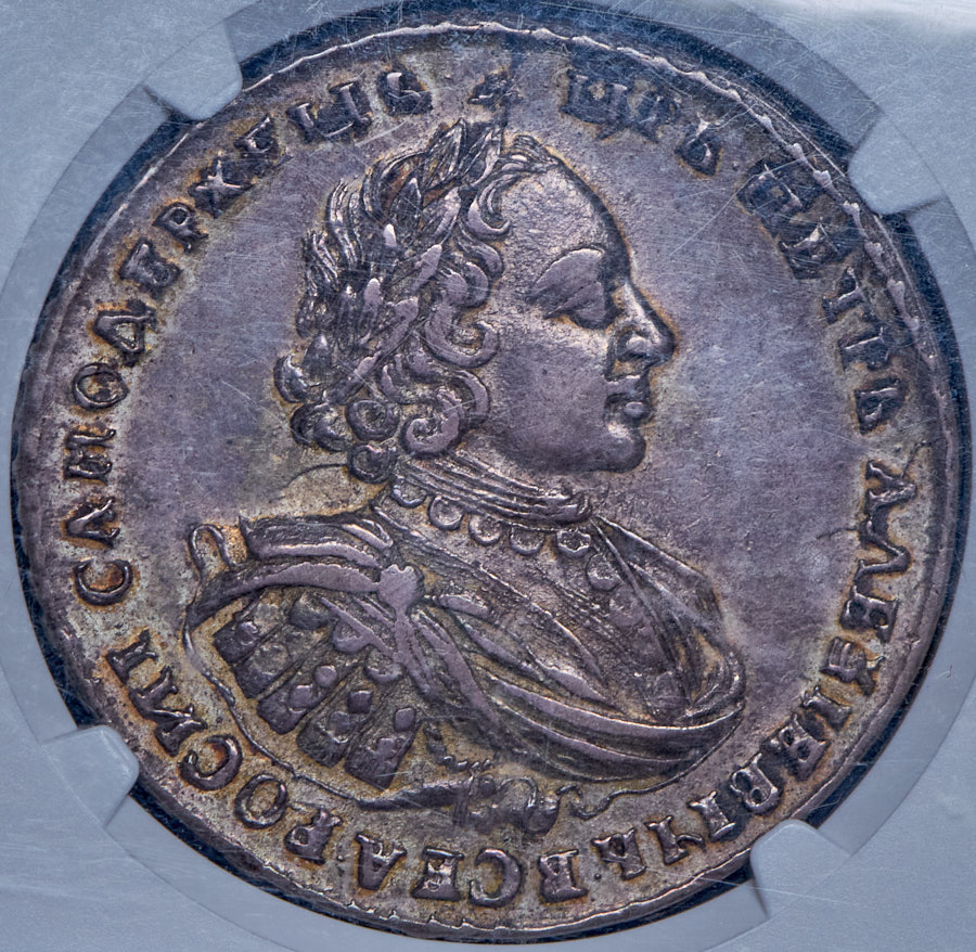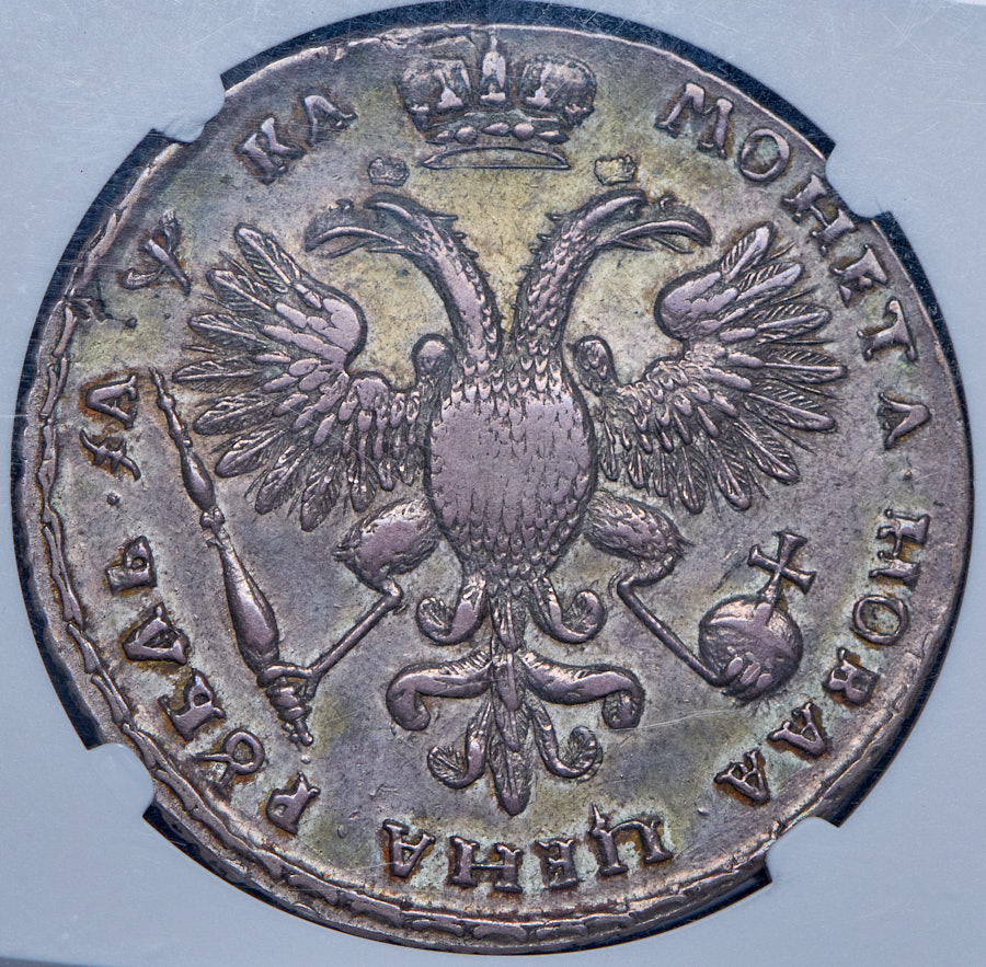 Кадашевский монетный двор. Без инициала медальера, над головой большой трилистник между точками.