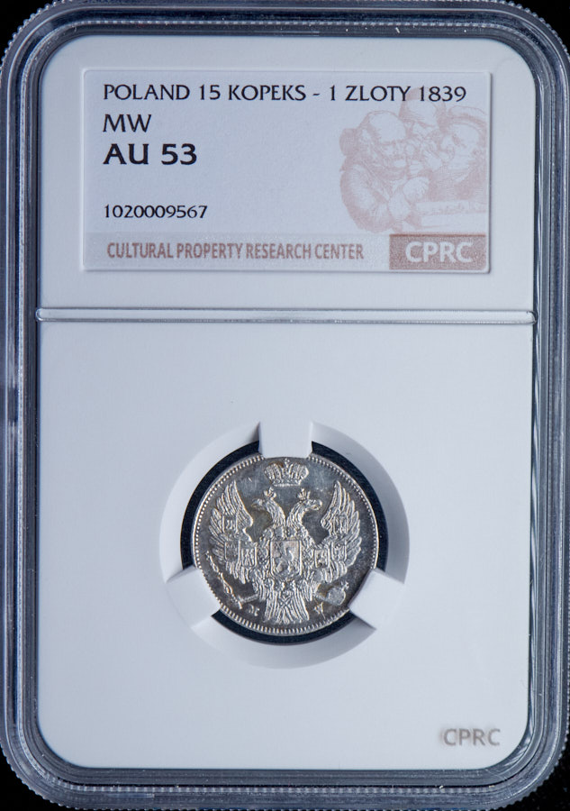 15 копеек - 1 злотый 1839 (в слабе) MW