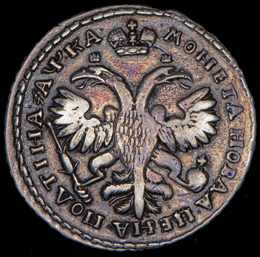 Кадашевский монетный двор. С пальмовой ветвью на груди, над головой точка, круговая легенда разделена точками.