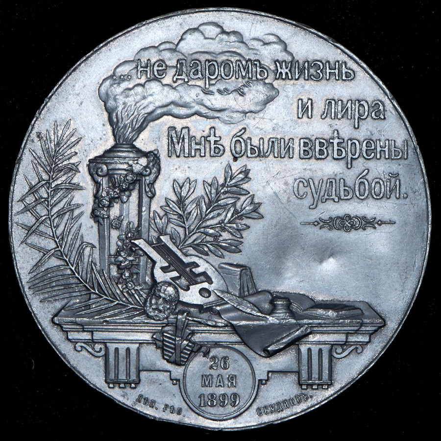 Односторонний оттиск медали "100-летие со дня рождания Пушкина А.С." 1899