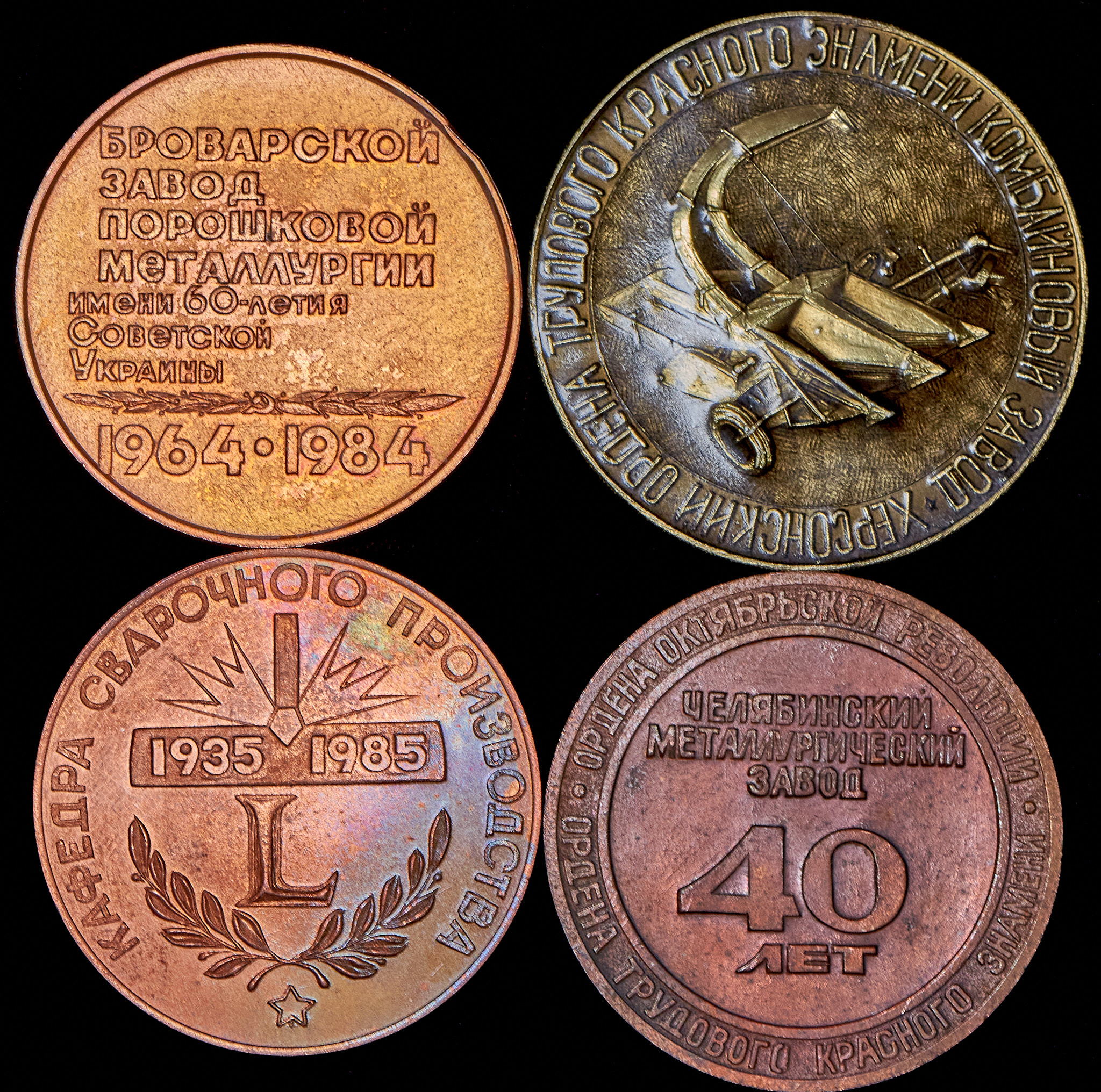 Набор из 4 медалей "Металлургия и промышленность в Украинской ССР"