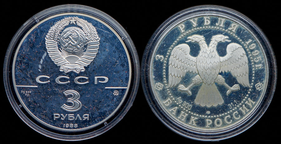 3 рубля 1988 "1000-летие древнерусского зодчества".