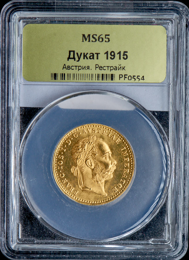 Дукат 1915. Рестрайк (Австрия) (в слабе)