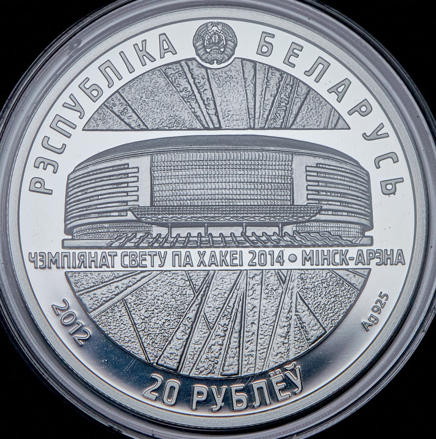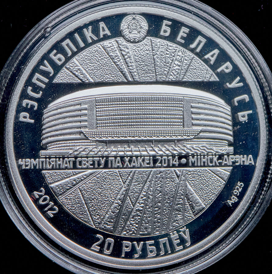 20 рублей 2012 "Чемпионат мира по хоккею 2014 года. Минск-Арена" (Беларусь)