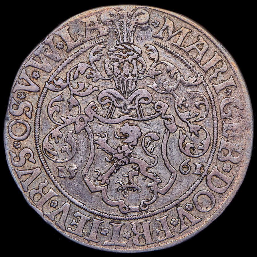 Т.н. Danielstaler. На реверсе изображен ветхозаветный сюжет: пророк Аввакум приносит еду брошенному в ров со львами пророку Даниилу.
