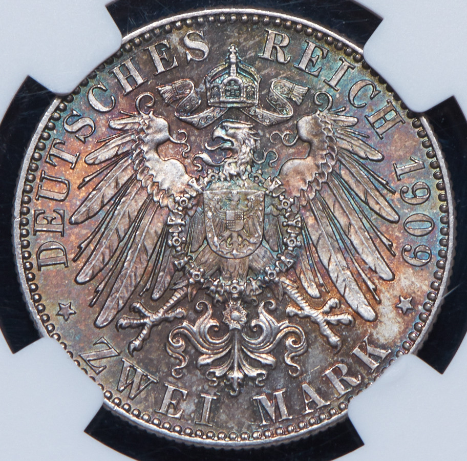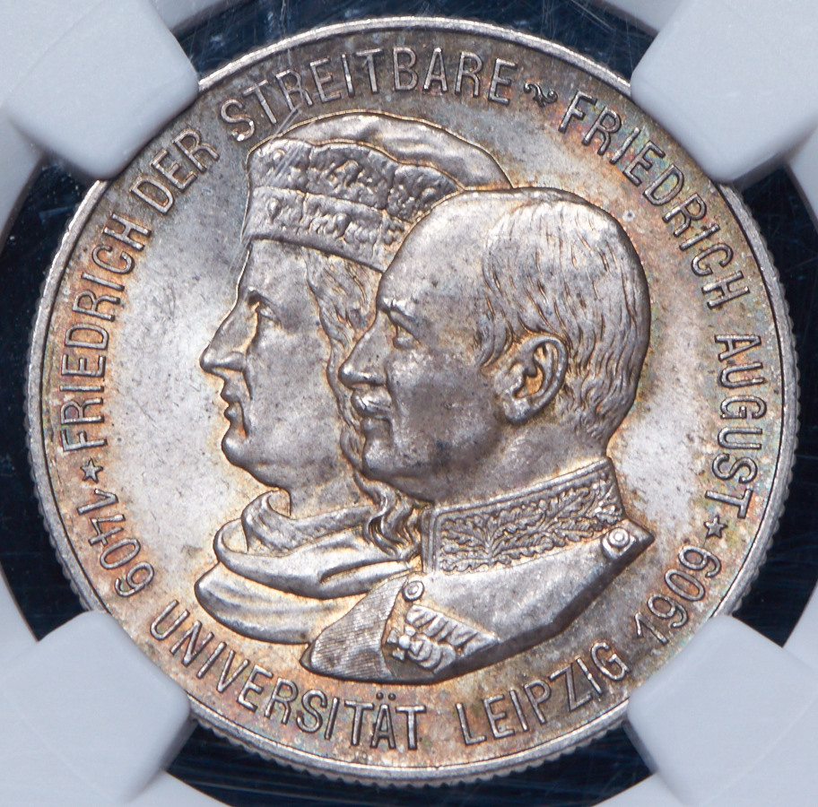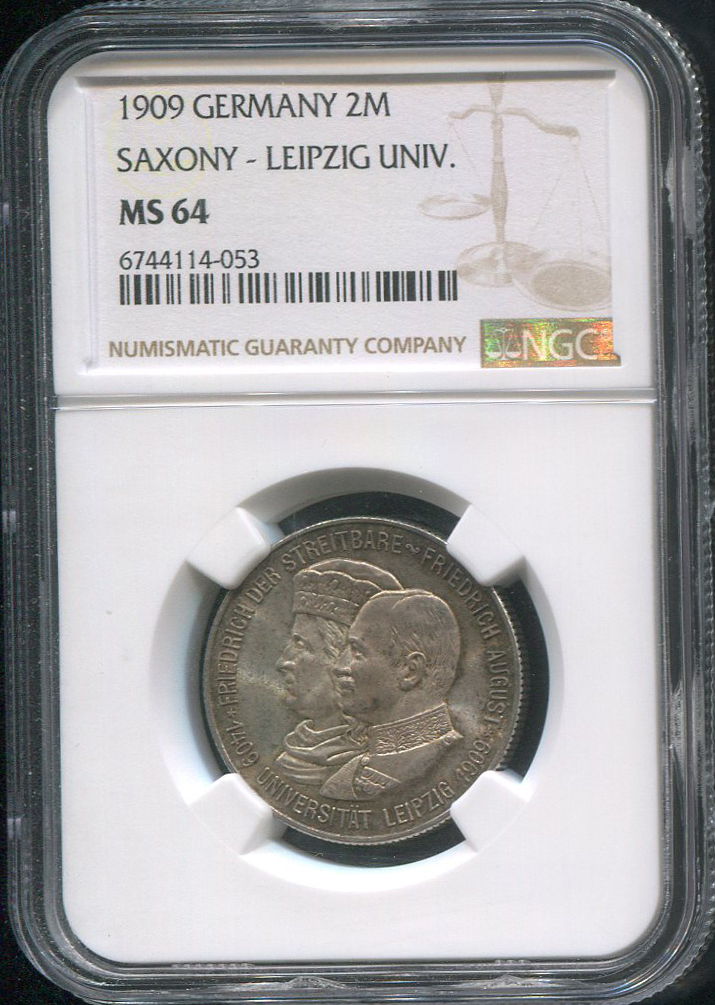 2 марки 1909 "500 лет Университету Лейпцига" (Саксония) (в слабе)