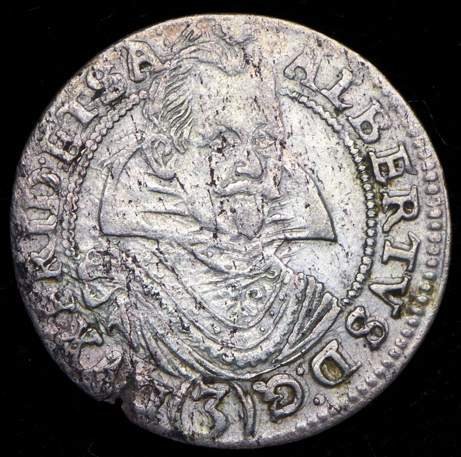 KM# 32.Альберт Валленштейн (1627—1634).Легенда аверса "ALBERTVS D : G (3) DVX FRI : ETSA" (Albertus Dei Gratia Dux Fridlandiae Et Saganae).
