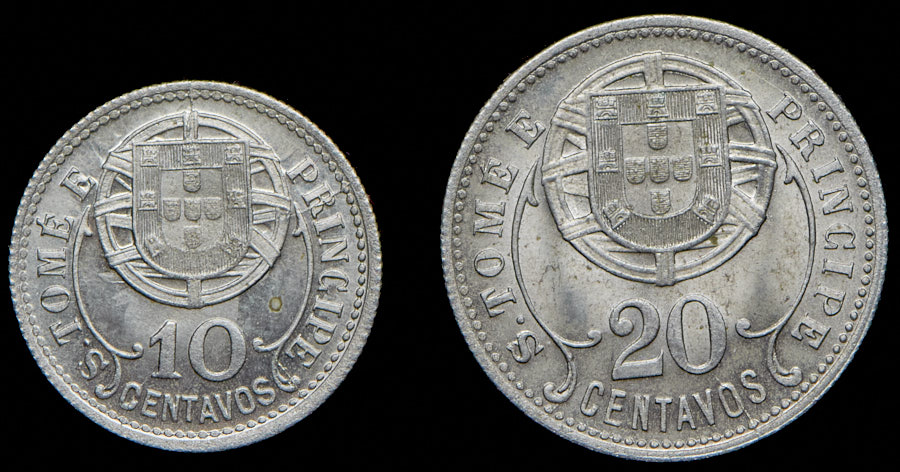 Набор из 2 монет 10 и 20 сентаво 1929 (Острова Сан-Томе и Принсипи)
