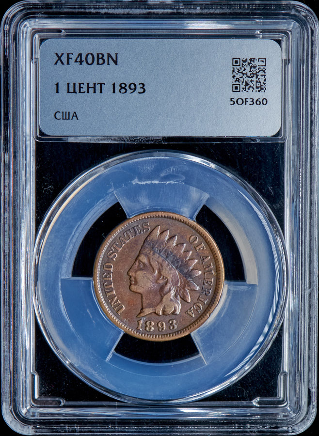 1 цент 1893 (США) (в слабе)