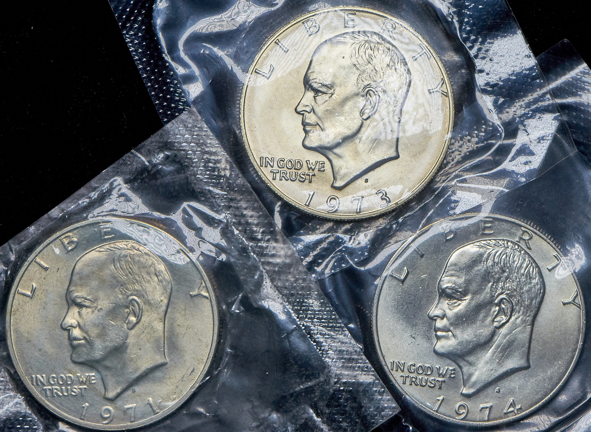 Набор из 3 сер монет 1 доллар 1971-1974 (США) (в запайках) S
