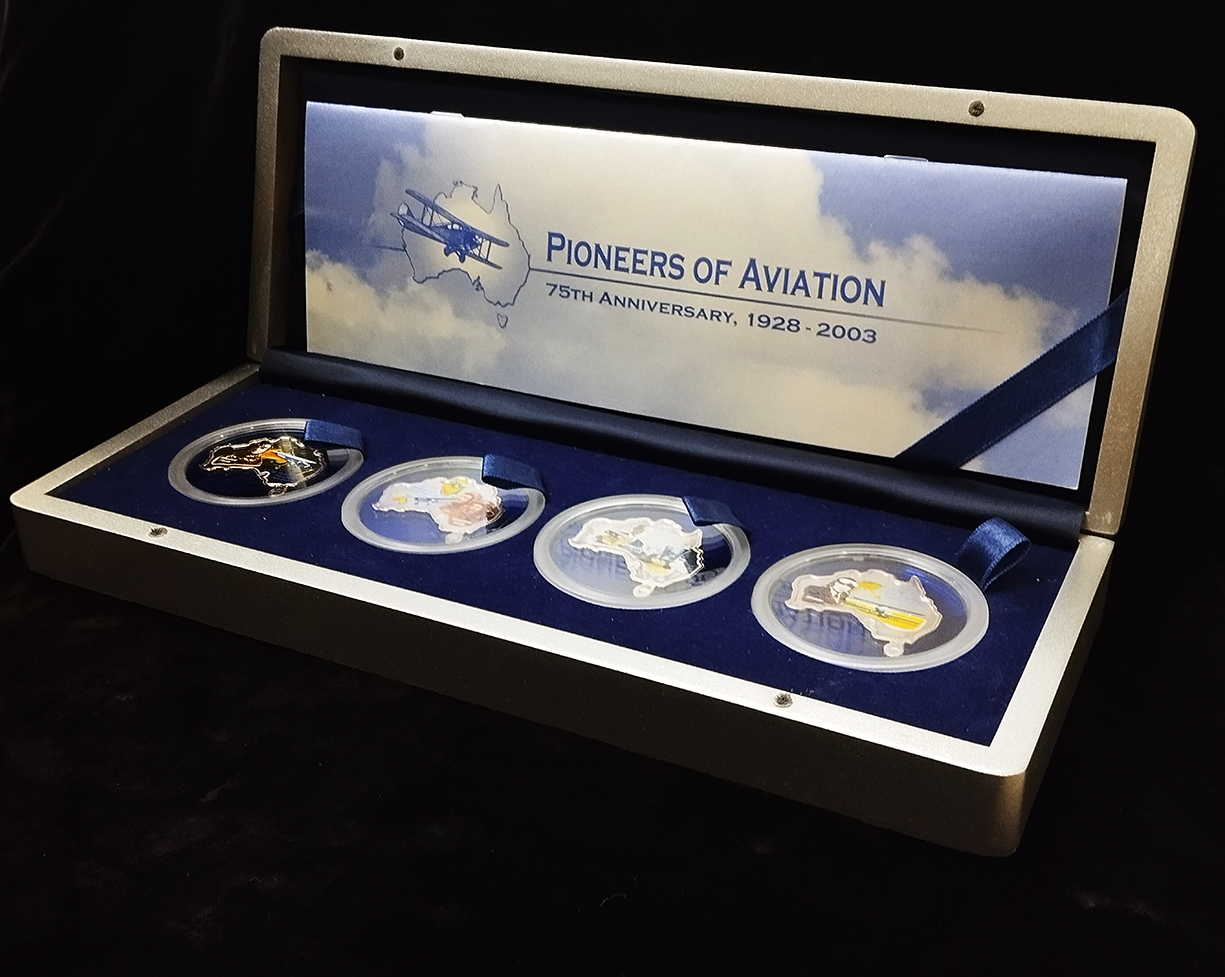 Набор из 4 сер. монет 1 доллар 2003 "Пионеры авиации" (Тувалу) (в п/у)