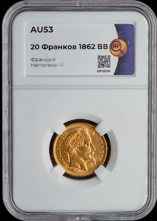 20 франков 1862 (Франция) (в слабе) BB