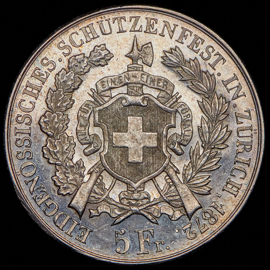 5 франков 1872 "Стрелковый фестиваль в Цюрихе" (Швейцария)