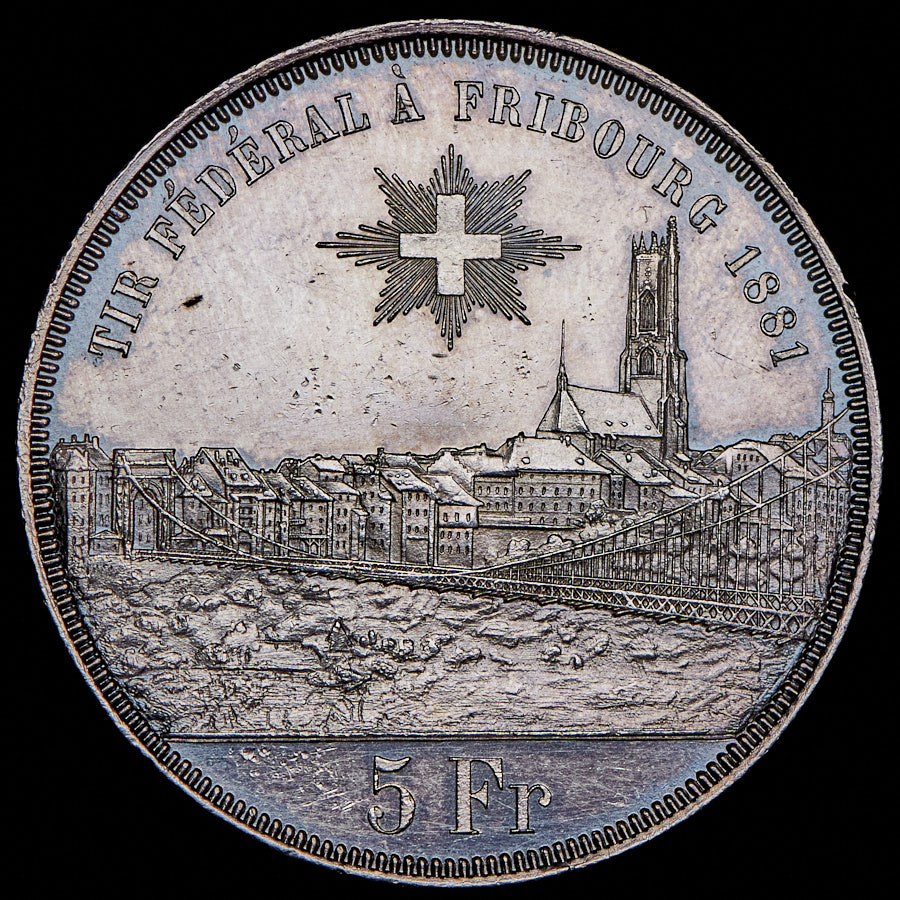 5 франков 1881 "Стрелковый фестиваль во Фрибуре" (Швейцария)