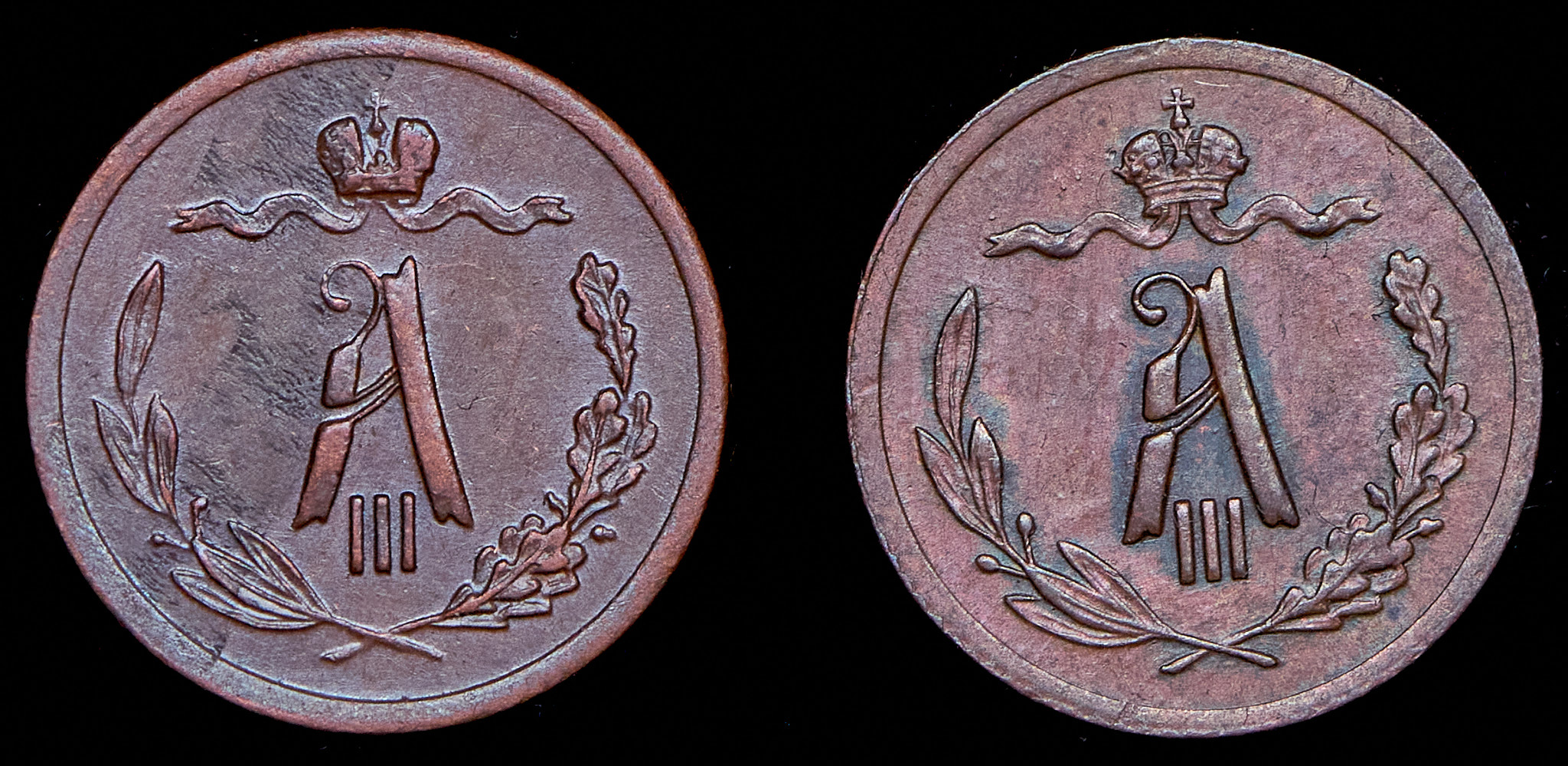 Набор из 2 медных монет 1/2 копейки 1887-1892