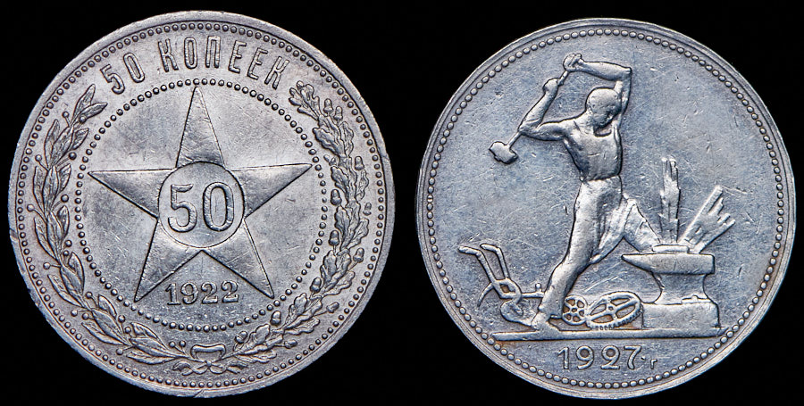 XF - AU.50 копеек 1922 (ПЛ), Полтинник 1927 (ПЛ).
