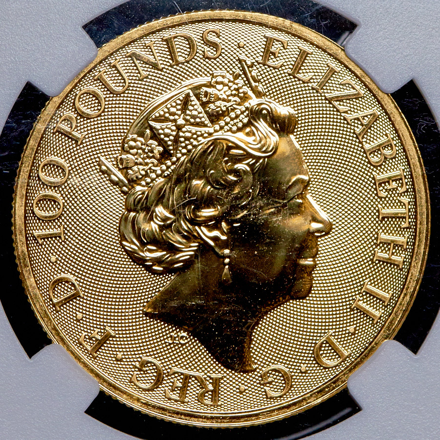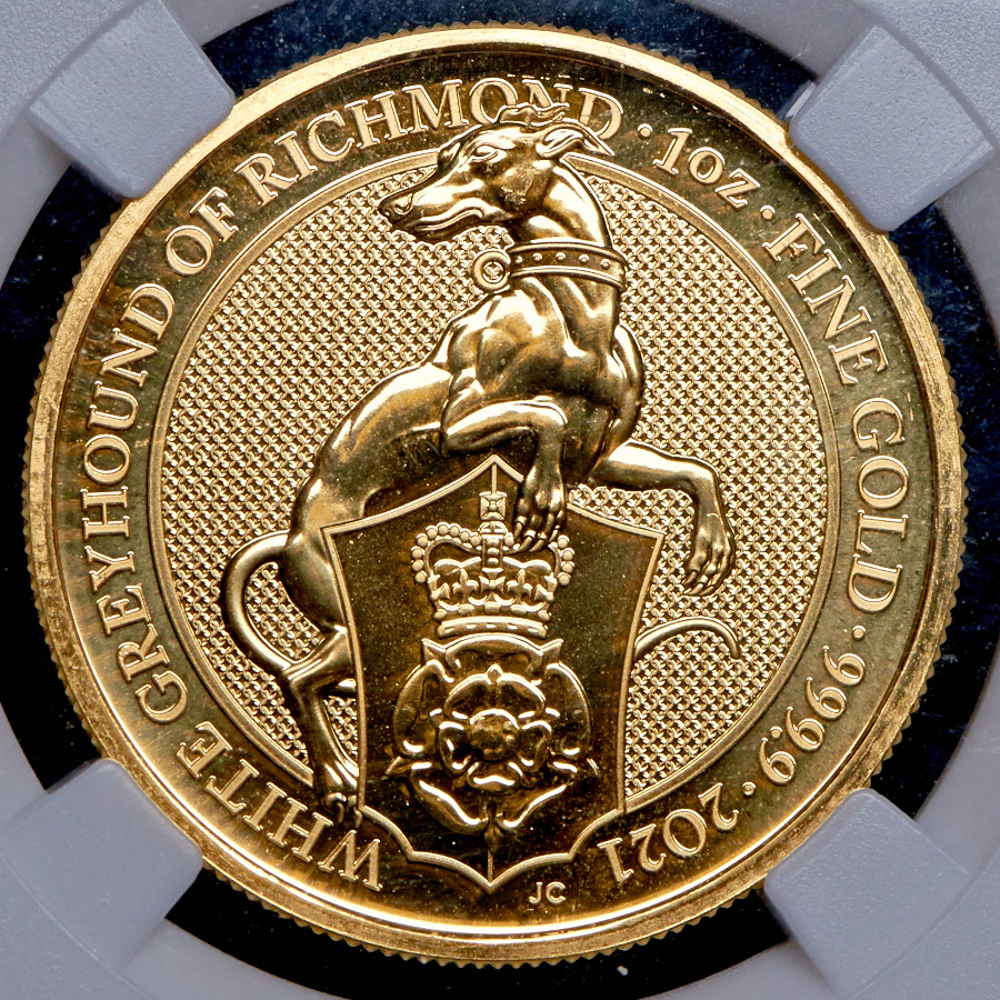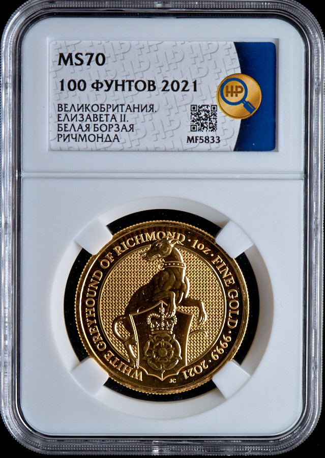 100 фунтов 2021 "Белая борзая Ричмонда" (Великобритания) (в слабе)
