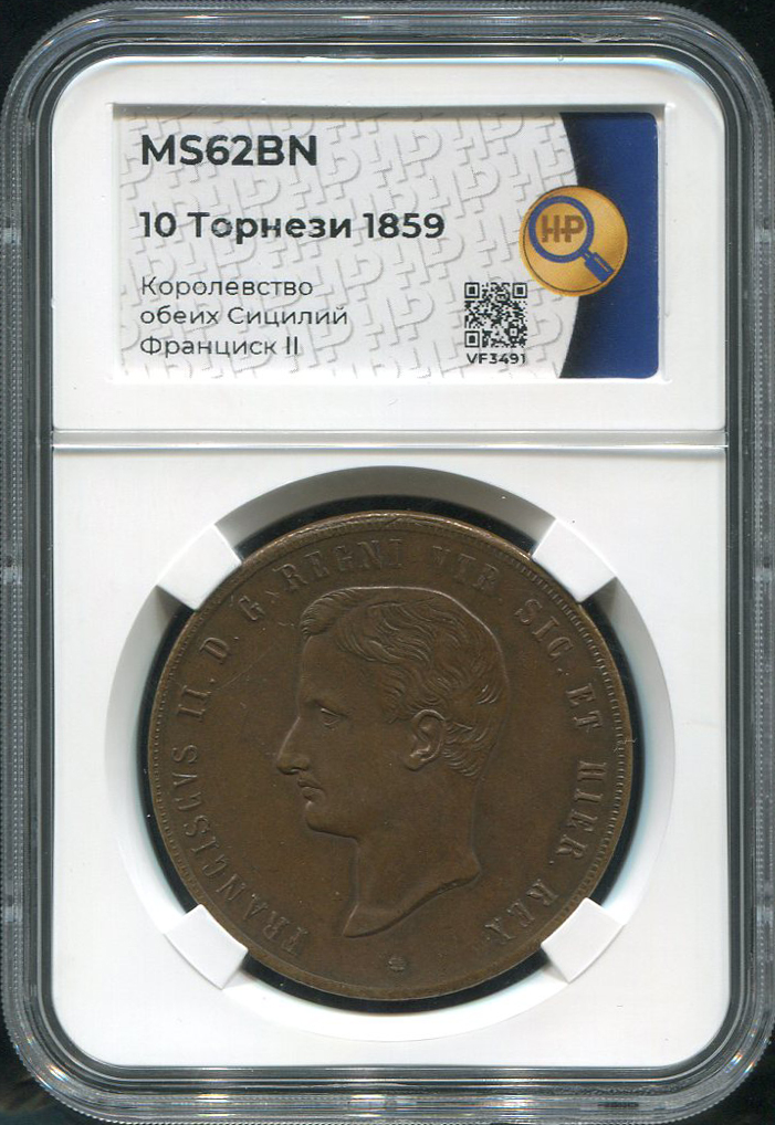 10 торнези 1859 (Королевство обеих Сицилий) (в слабе)