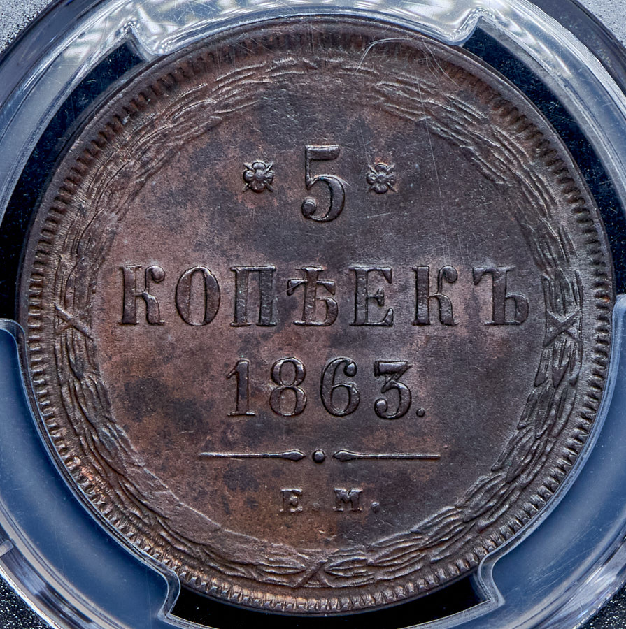 5 копеек 1863 (в слабе) ЕМ