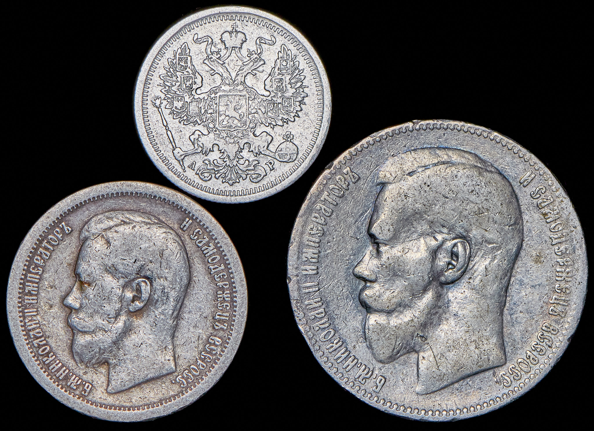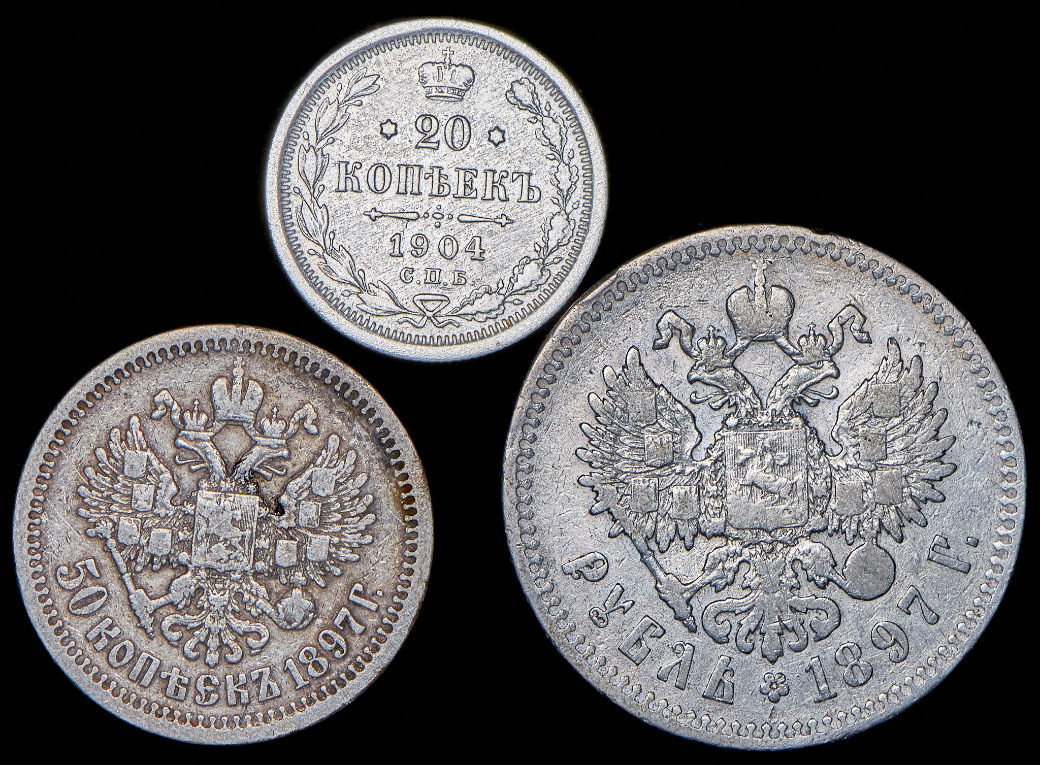 F - VF.Рубль 1897 (**), 50 копеек 1897 (*), 20 копеек 1904 СПБ-АР.
