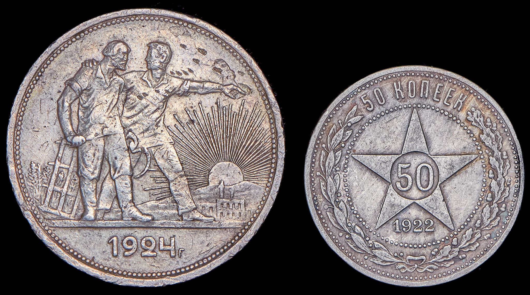 В набор вошли:1 рубль 1924 года (ПЛ)50 копеек 1922 года (ПЛ)