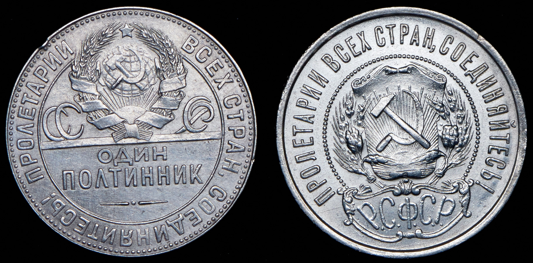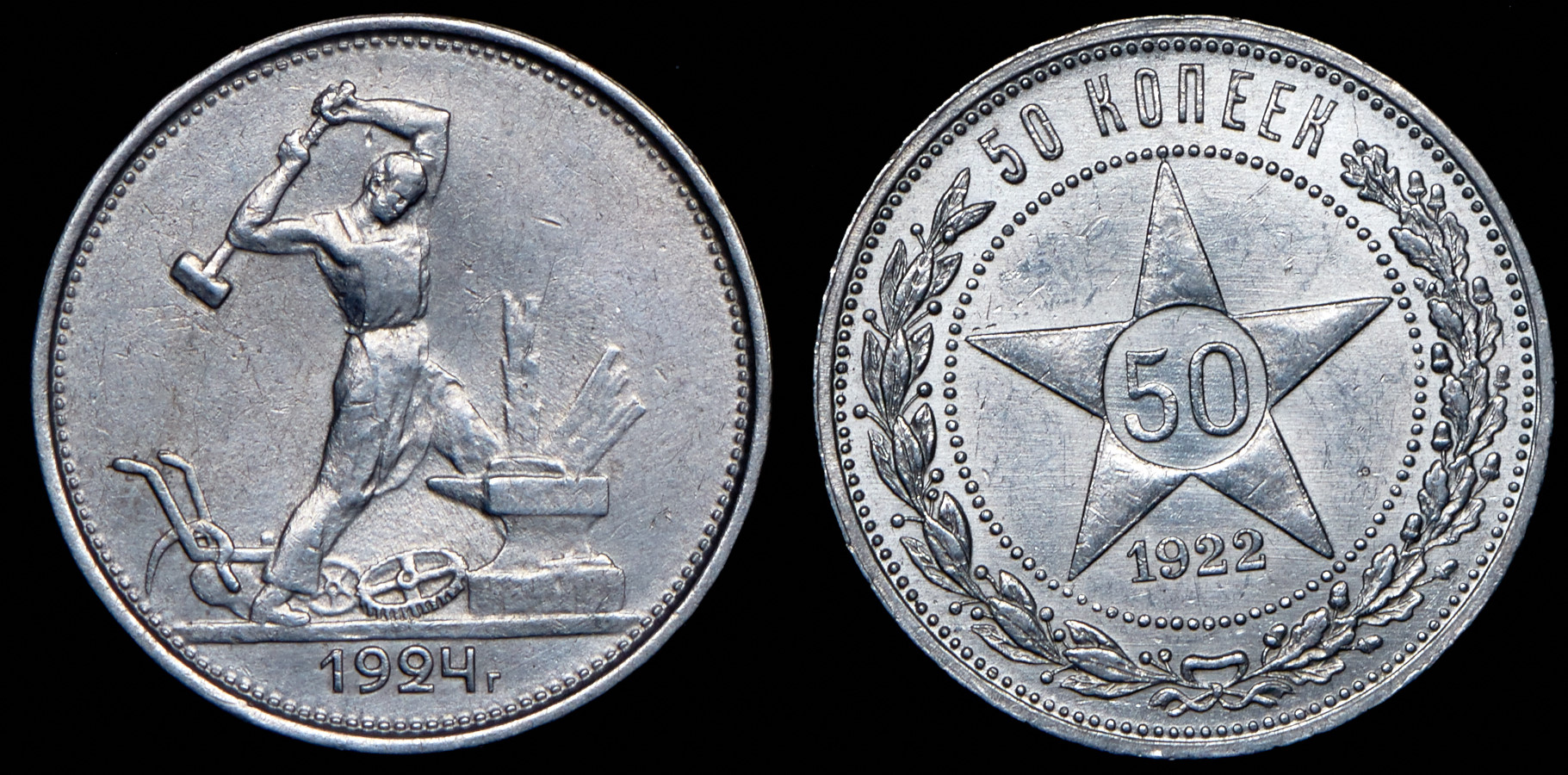 XF-AU. 50 копеек 1922 (ПЛ), Полтинник 1924 (ТР).