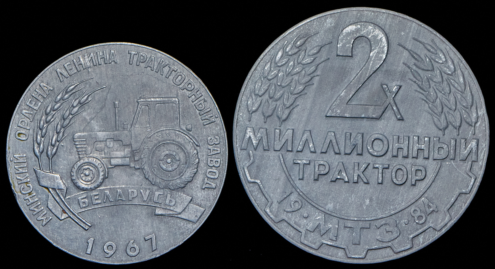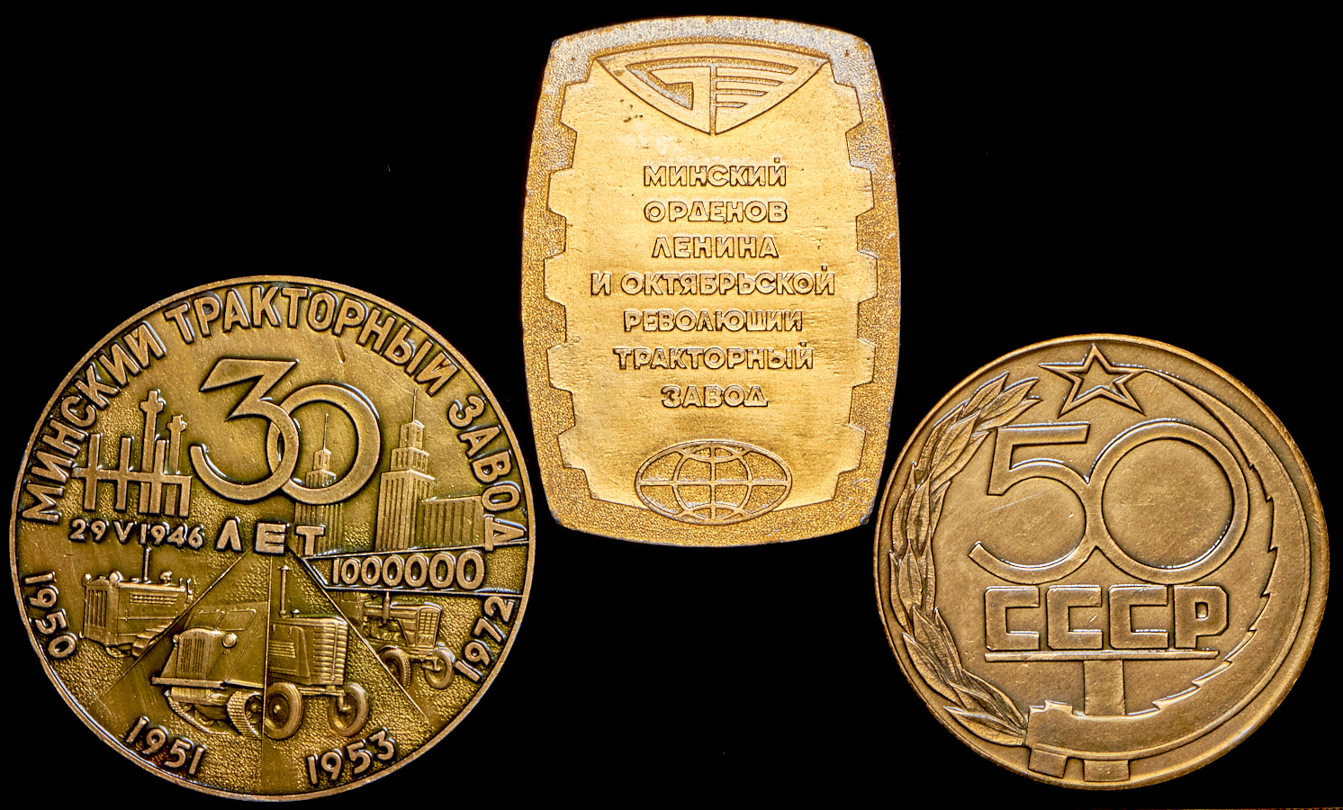 1. Медаль Минский ордена Ленина тракторный завод. Трактор Беларусь. 50 лет Великой октябрьской социалистической революции. 1967 год. Диаметр 65 мм. Алюминий.