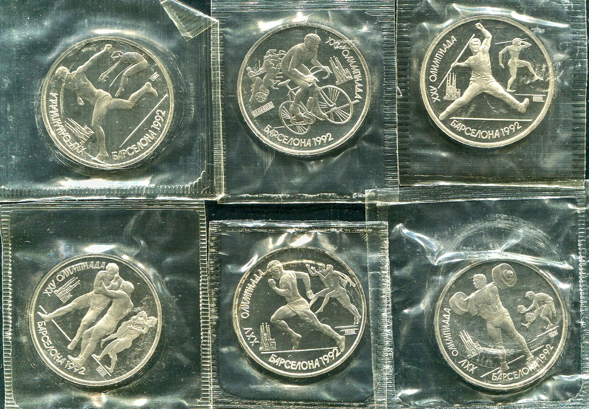 Набор из 6 монет Рубль "Олимпийские игры 1992 года в Барселоне" (в запайках)