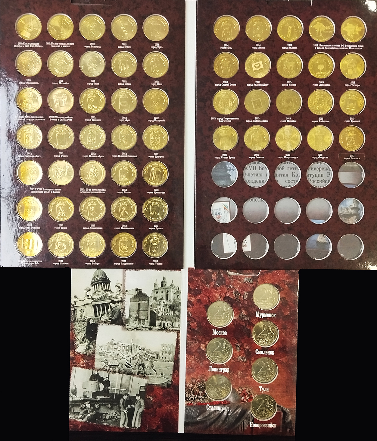 "Города-герои", "Города воинской славы", "Памятные монеты банка России 1999-2010", "Памятные биметаллические монеты России".