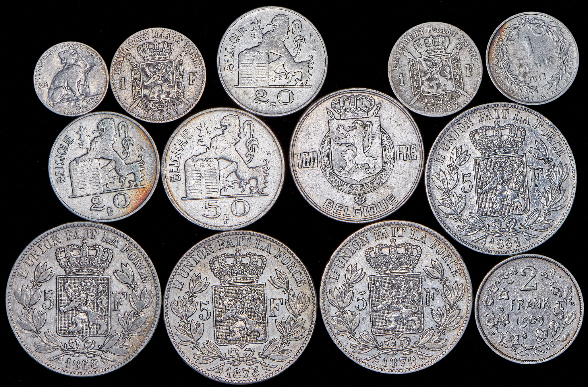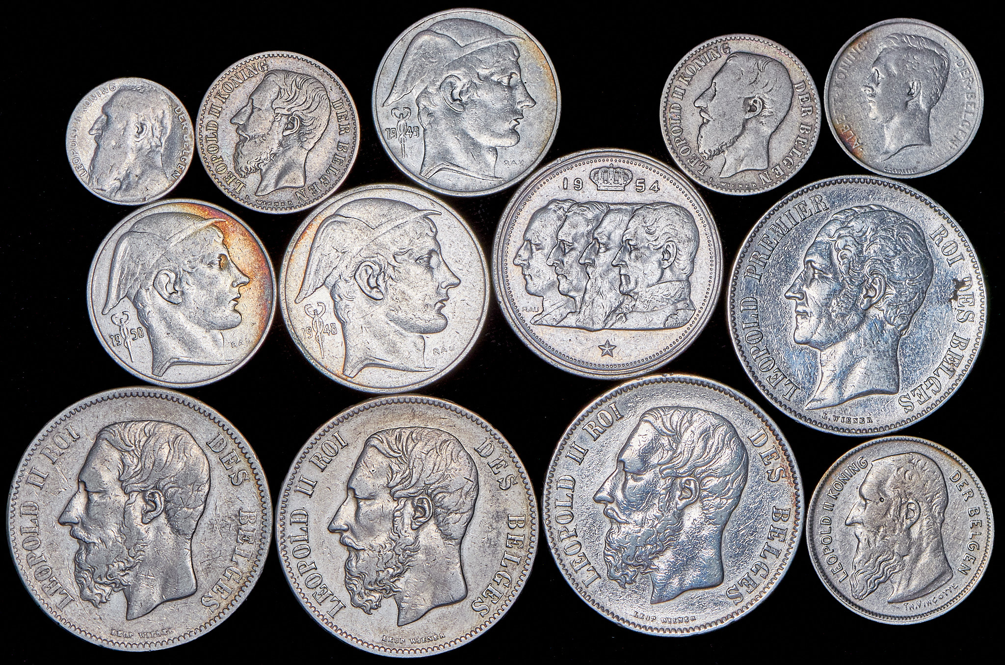 Набор из 13 сер. монет 1851-1954 (Бельгия)