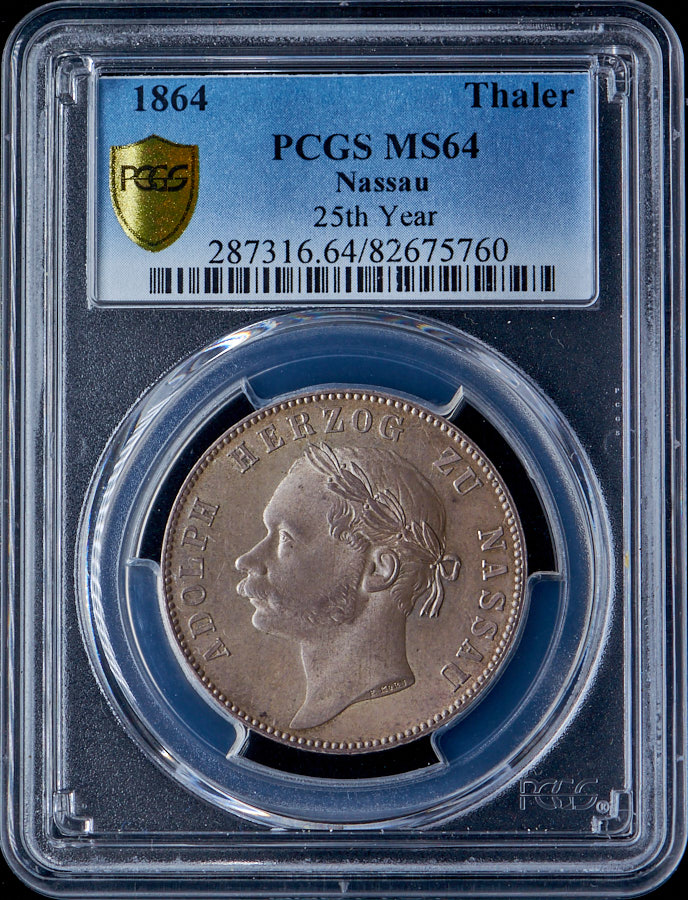 Талер 1864 "25-летие правления герцога Адольфа" (Нассау) (в слабе)