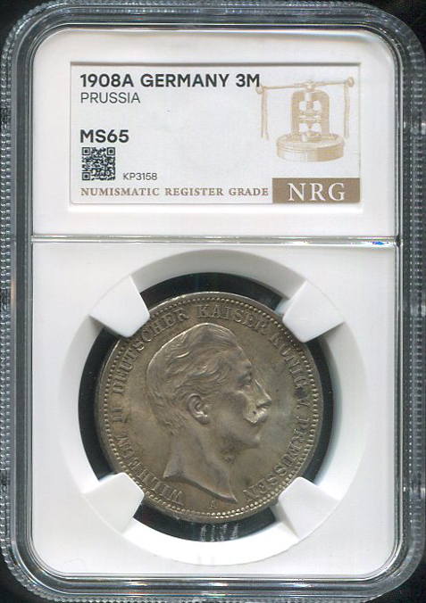 3 марки 1908 (Пруссия) (в слабе) А