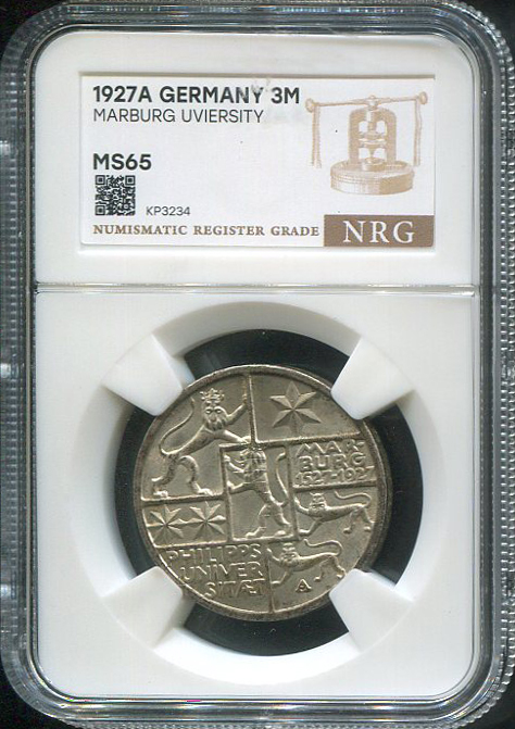 3 марки 1927 "400 лет Университету в Марбурге" (Германия) (в слабе) А