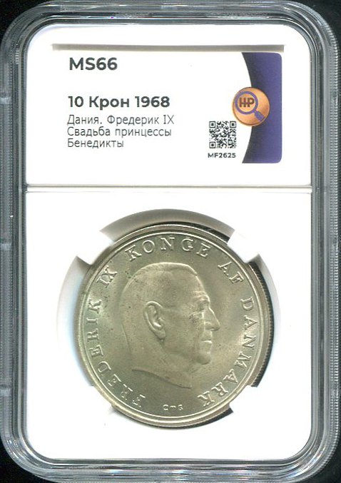 10 крон 1968 "Свадьба принцессы Бенедикты" (Дания) (в слабе)