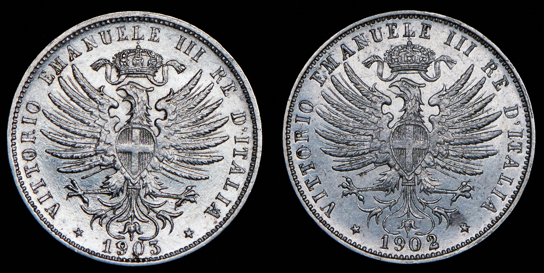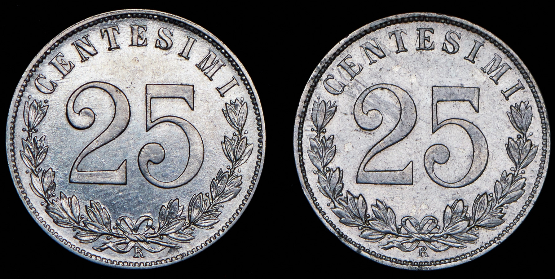 Набор из 2 сер. монет 25 центов 1902-1903 (Италия)