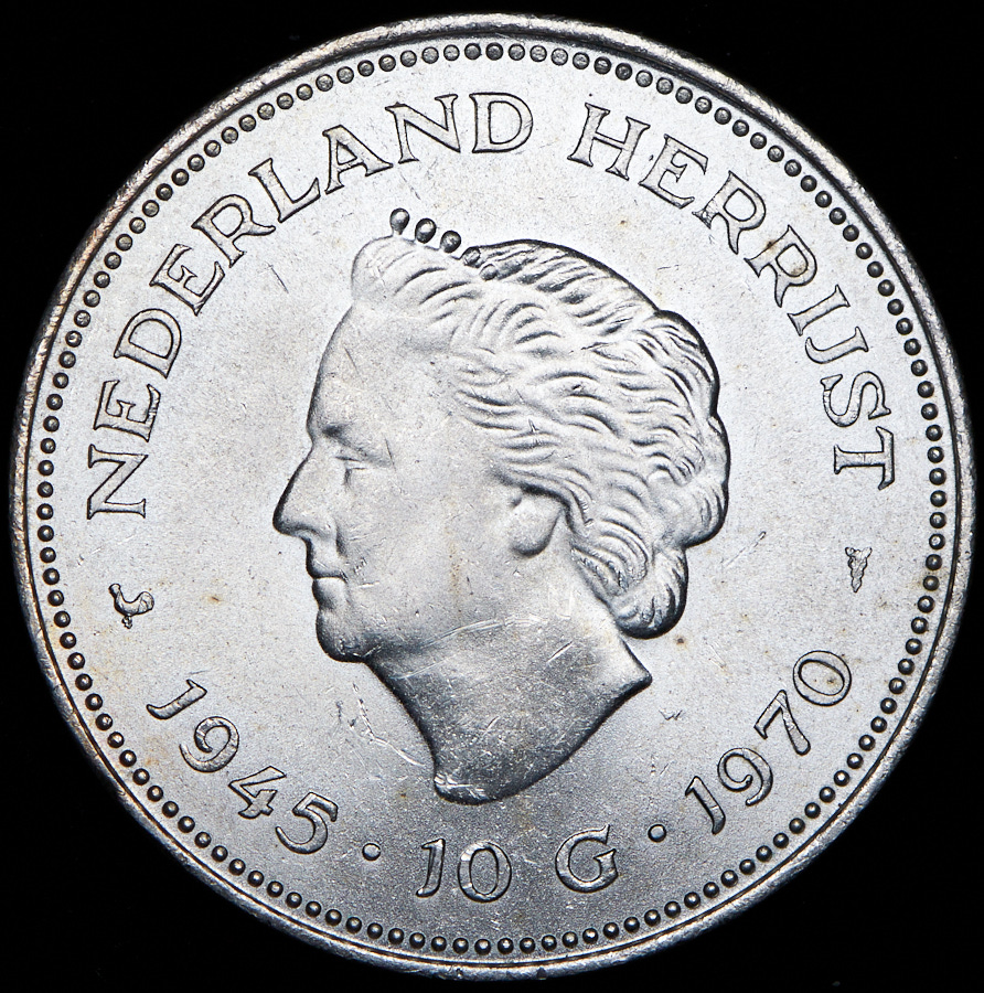 10 гульденов 1970 "25 лет освобождения Нидерландов от фашистских захватчиков" (Нидерланды)