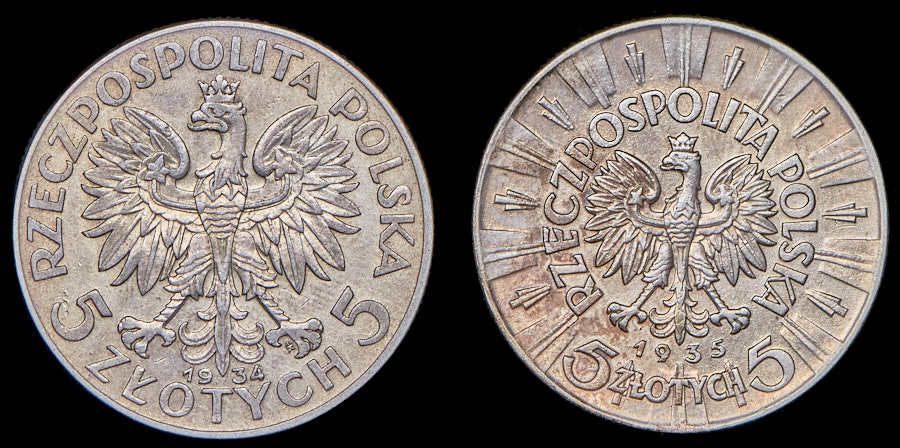 Набор из 2 сер. монет 5 злотых 1934, 1935 (Польша)