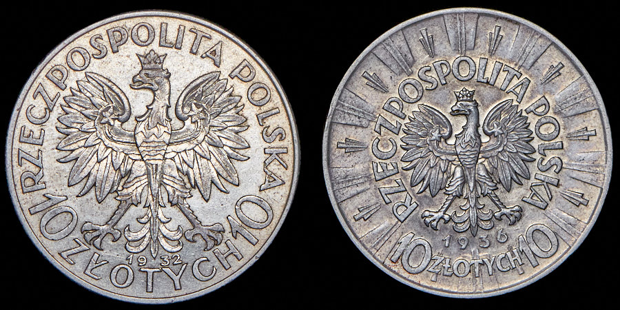 Набор из 2 сер. монет 10 злотых 1932, 1936 (Польша)