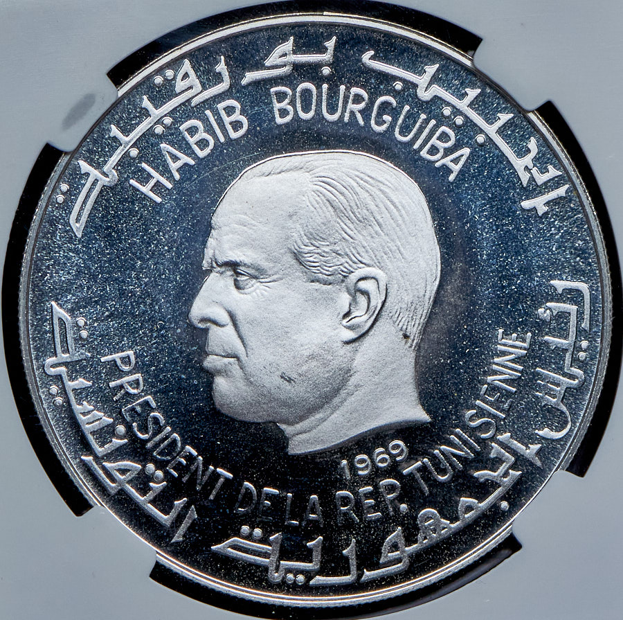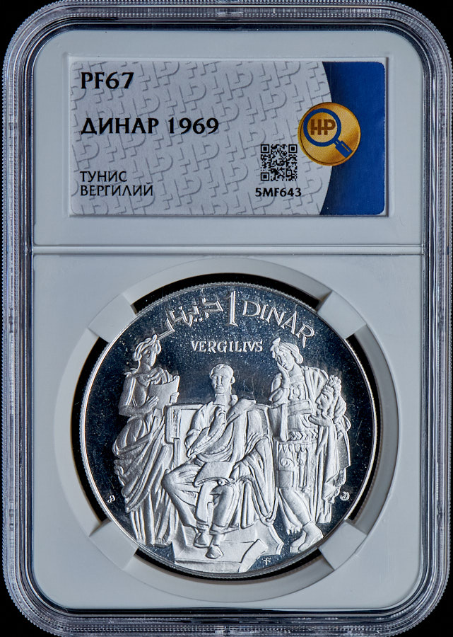 1 динар 1969 "Вергилий" (Тунис) (в слабе)