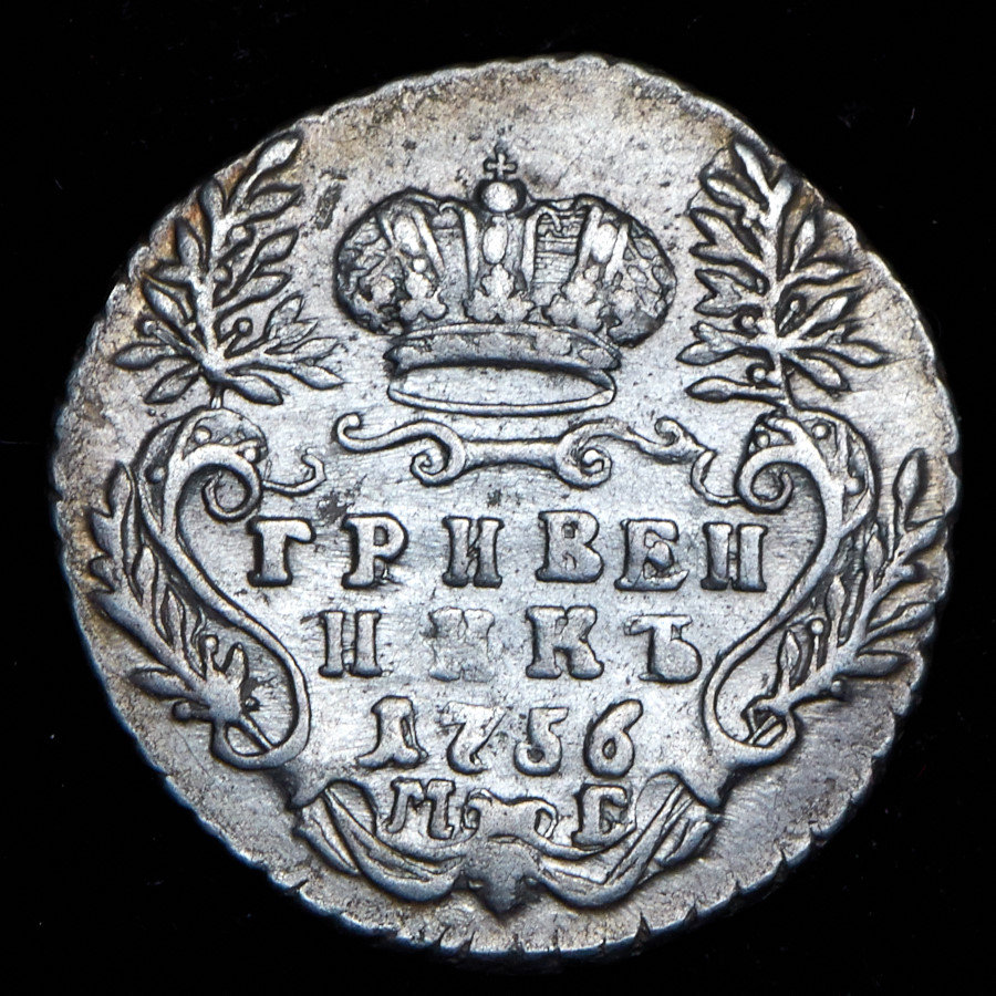 Гривенник 1756 МБ