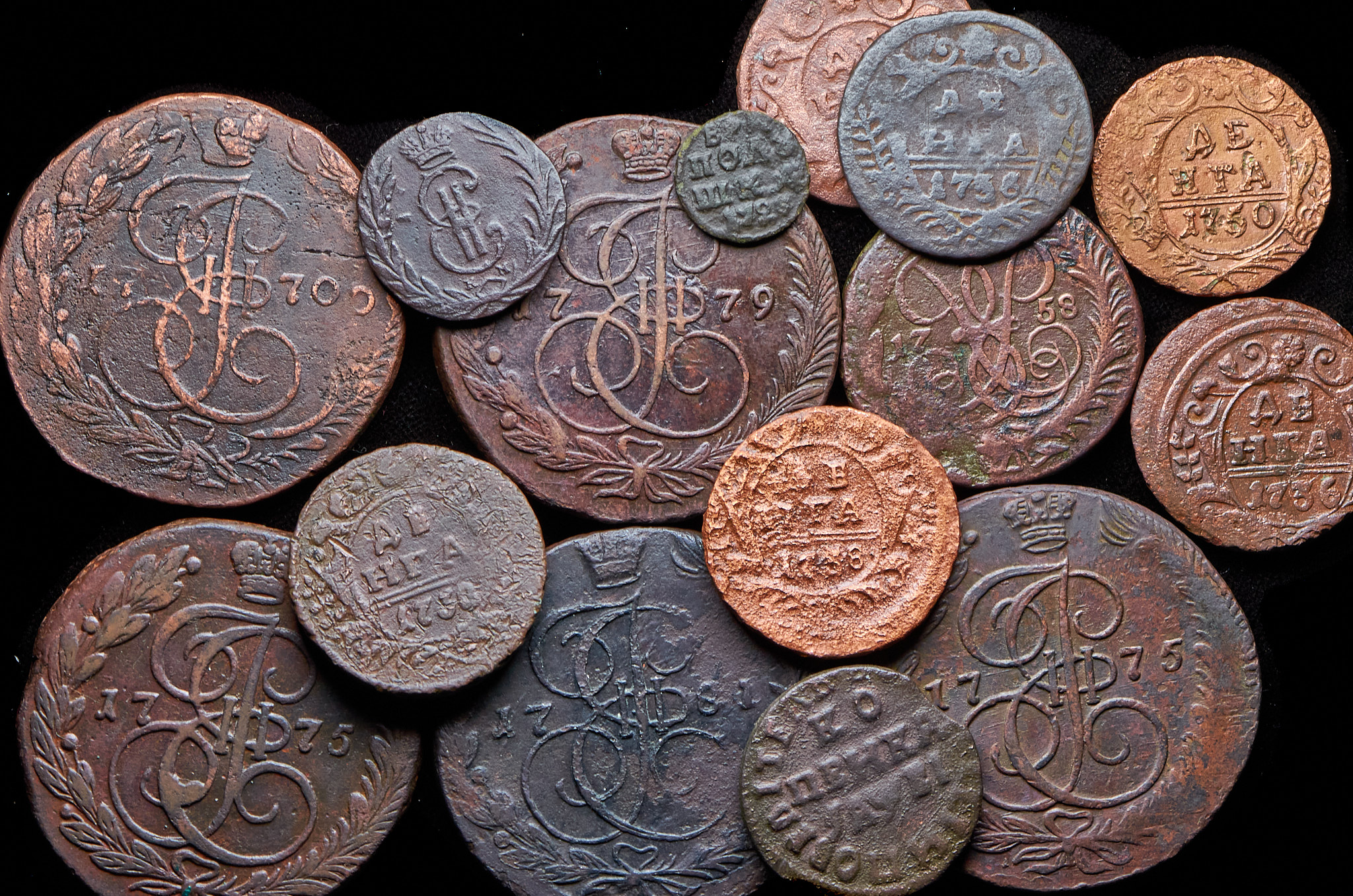 Набор из 15 медных монет 1720-1781