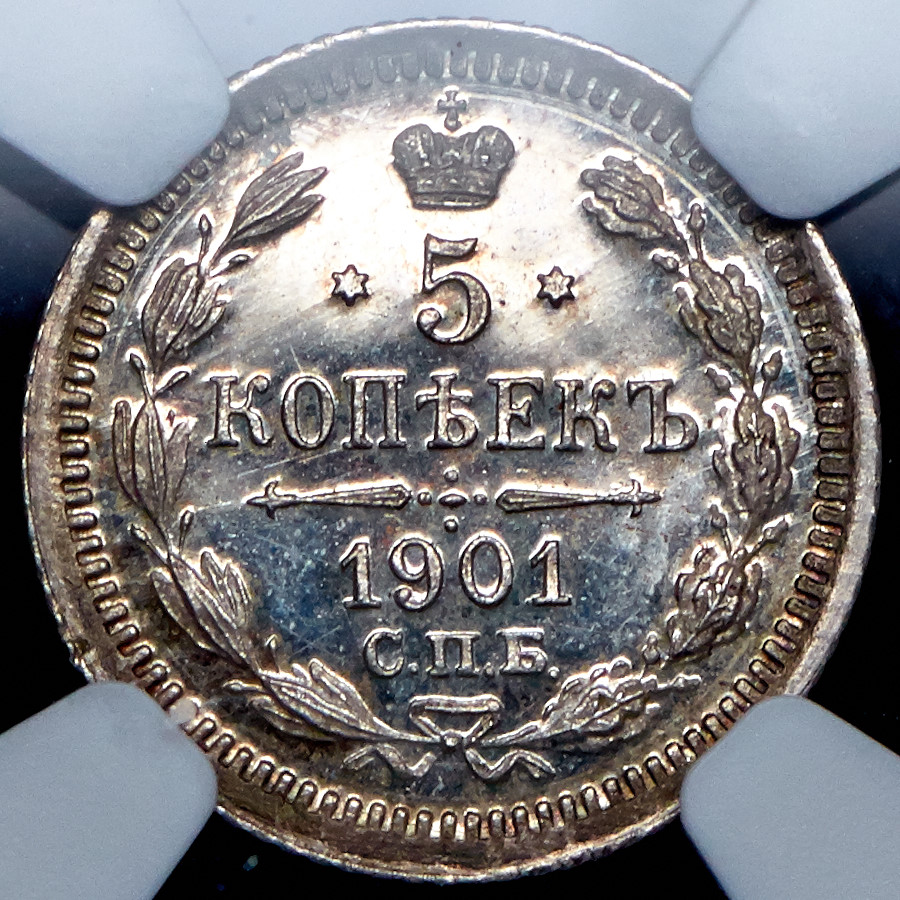 5 копеек 1901 (в слабе) СПБ-ФЗ
