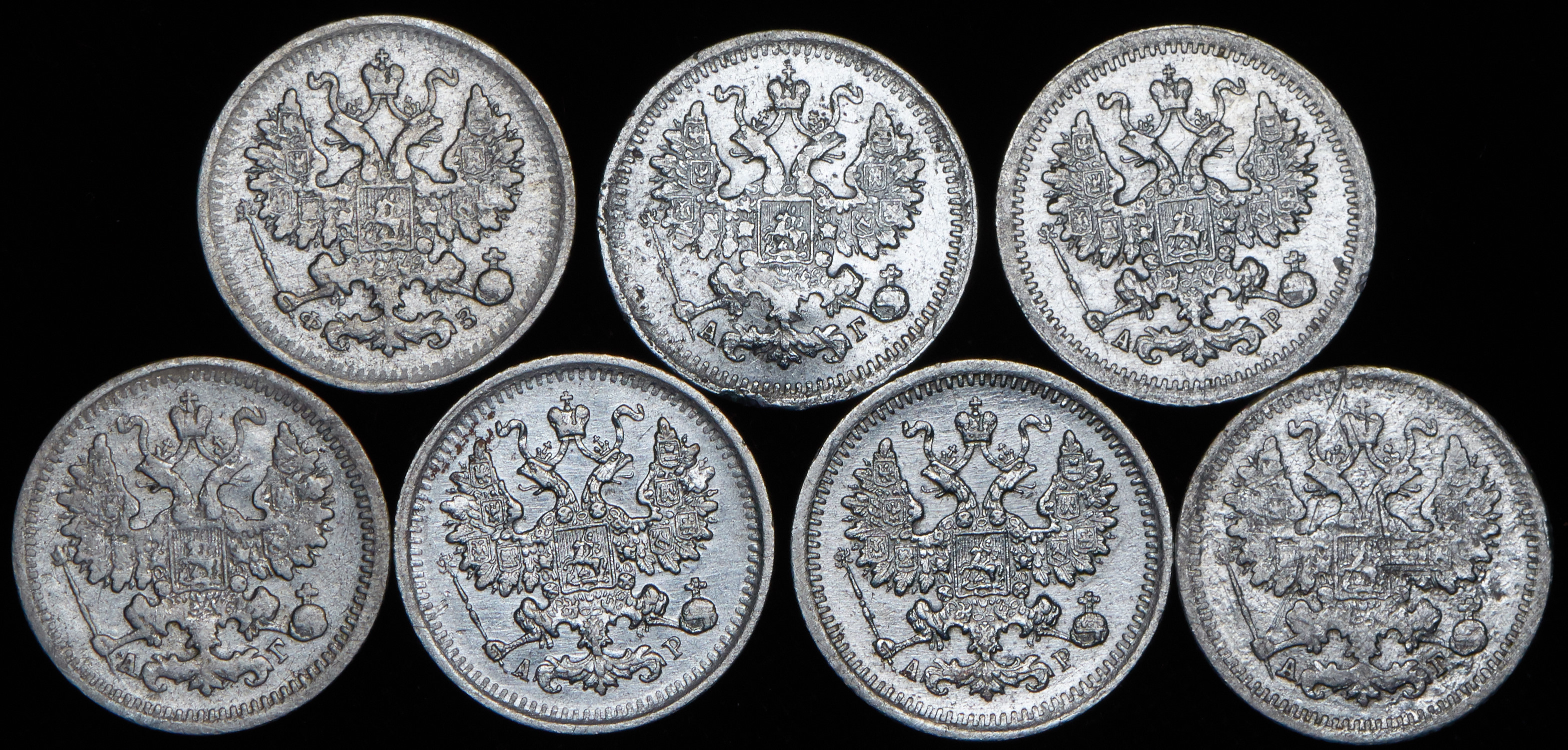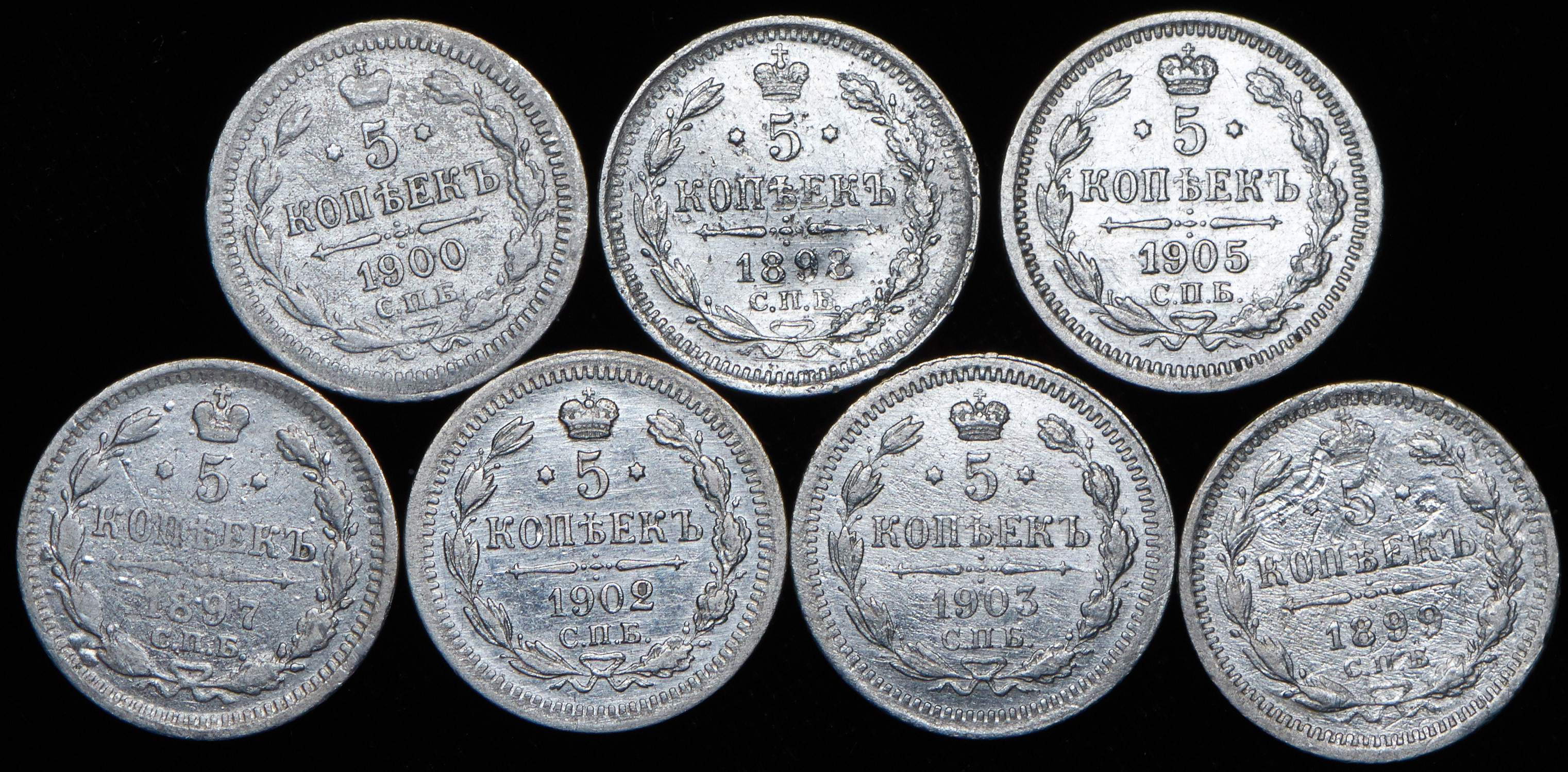 Набор из 7 сер. монет 5 копеек 1897-1905