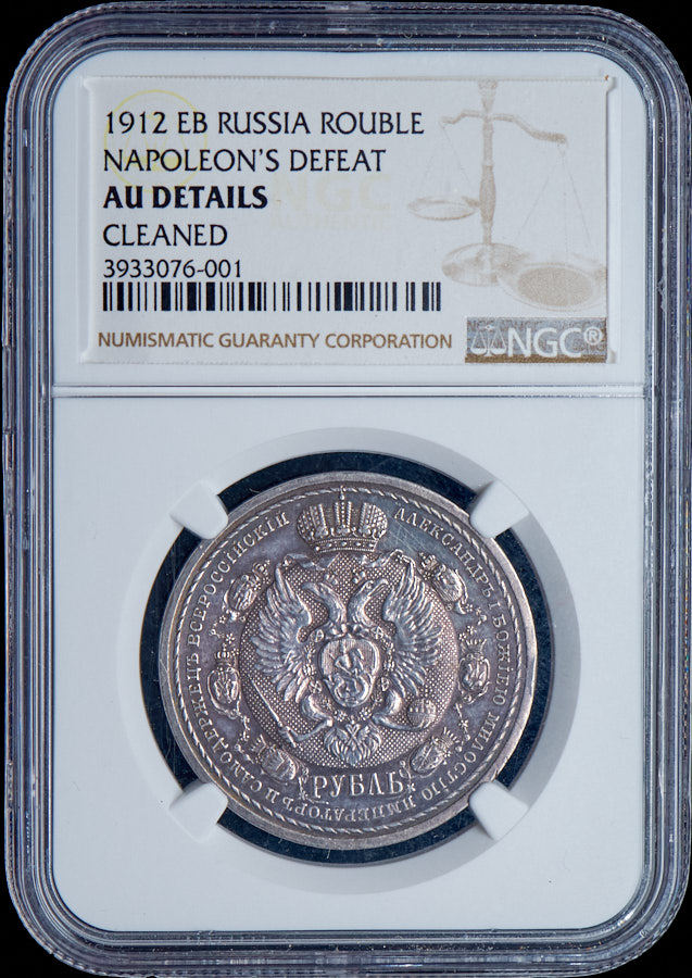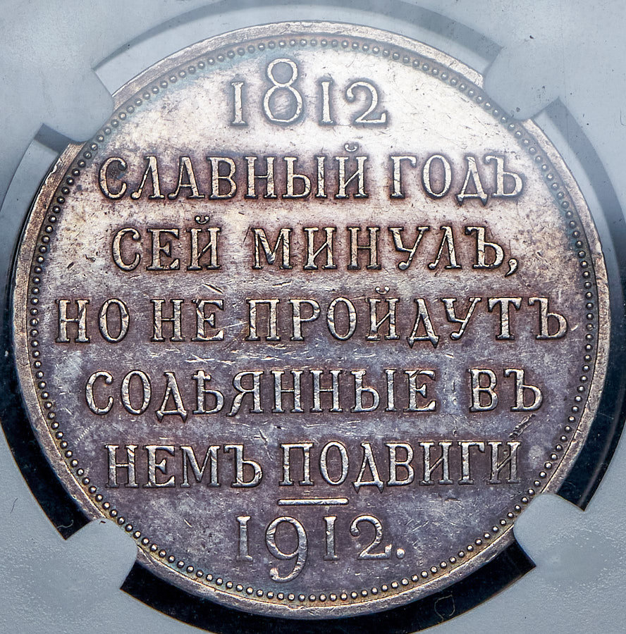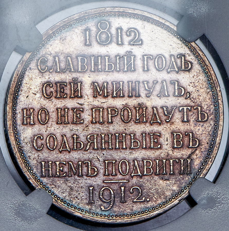 Чеканена в честь 100-летия победы в Отечественной войне 1812 года.